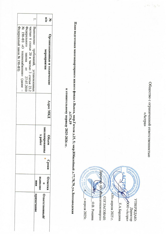 План подготовки МКД к отопительному периоду 2025-2026